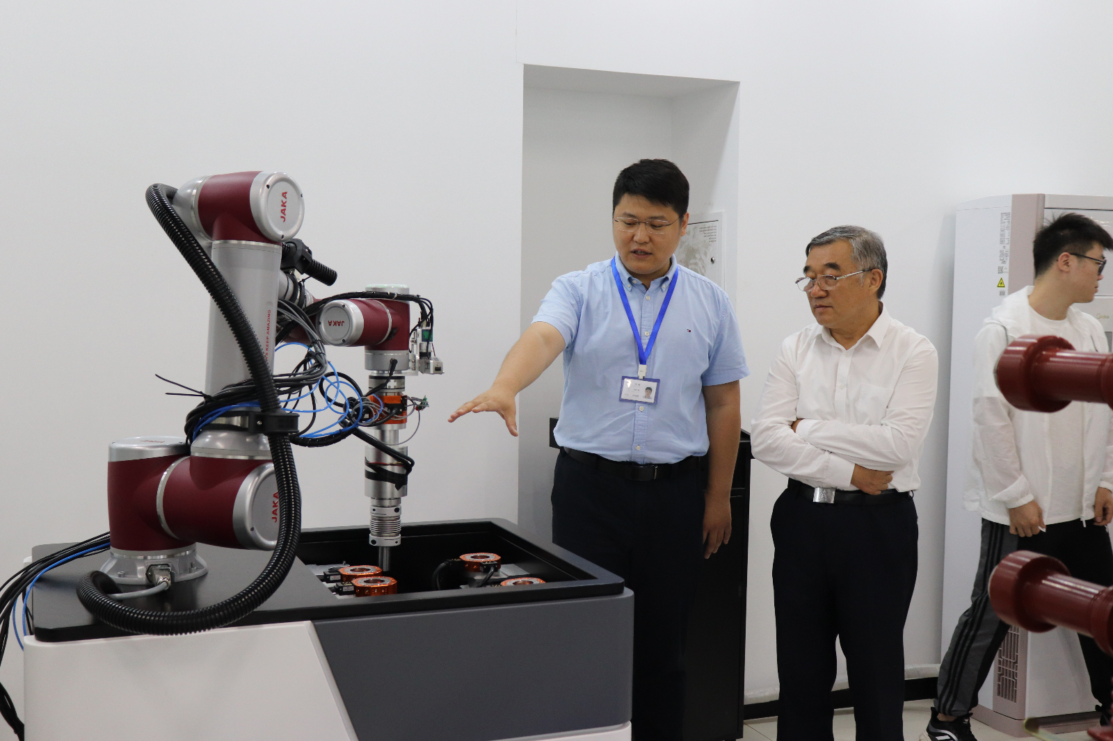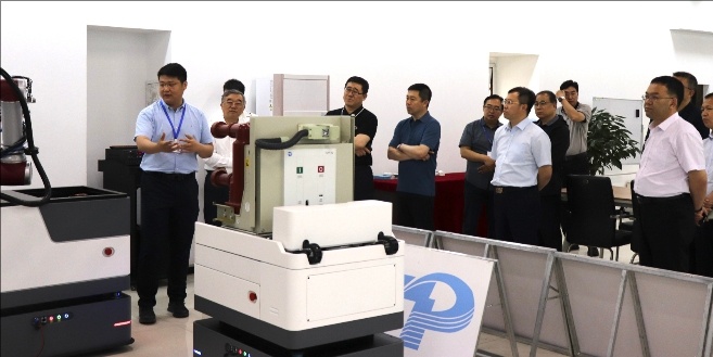 在拓普電氣智能裝備實驗室,研發部總經理王釗向大家介紹了企業發展歷程,并對我司第二代高壓開關柜智能檢修機器人在產品研發、科技創新、項目落地、市場前景等方面的情況進行了詳細介紹。各位領導對我司第二代高壓開關柜智能檢修機器人產品給予了充分的肯定,并希望我公司趁勢而為,取得更好的發展。公司參會人員圍繞該產品未來發展等具體問題與參觀嘉賓進行了深入交流。